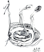 At about the same time, I wake up, sounds and songs of the birds start. After some days, I started recognising the birds by their voice. A squirrel comes down from the tree on one side of the gate followed by her children, jump on the ledge of the gate. All of them, except one, cross the gate in a line, jump on the fruit tree on the other end of the gate and vanish in it. The naughty one comes down and jumps on the ground, looks around and then runs to join the family. Seeds of eaten fruits start falling on the ground at irregular intervals from the tree in which the family of squirrels has vanished. The dove descends on the gate and after arranging her feathers flies away. A snail has started crossing the courtyard |