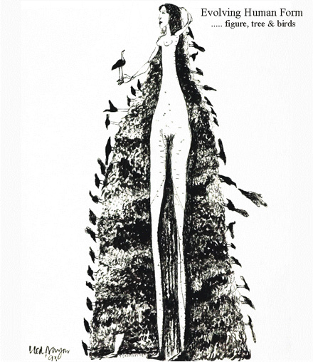 'Figure with tree & birds' 1993 Indian ink on paper 29 x 22 cm