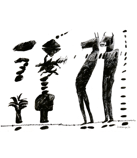 'Figure with animal head' 1980 indian ink on paper 59 x 46 cm