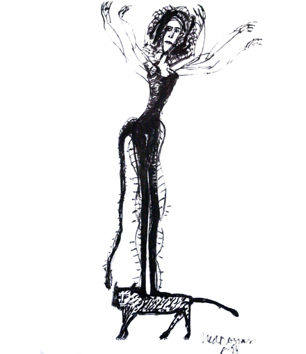 'Figure with many arms' 1993 indian ink on paper 59 x 46 cm