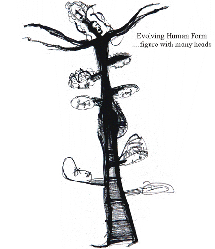 'Figure with many heads' 1986 Indian ink on paper 75 x 55 cm