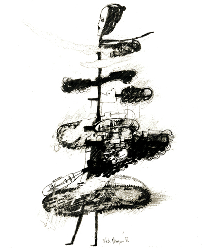 'Figure with many heads' 1986 Indian ink on paper 60 x 50 cm
