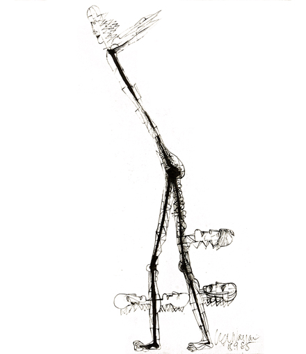 'Figure with many heads' 1985 Indian ink on paper 60 x 50 cm
