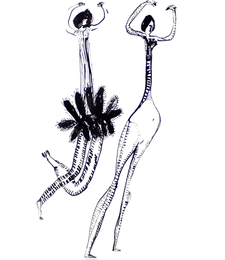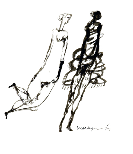 'Two Figures' 1984 in dian ink on paper 60 x 45 cm