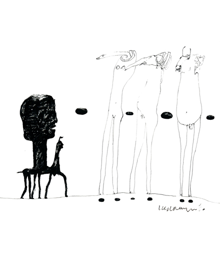 'Figure with animal head' 1980 indian ink on paper 59 x 46 cm